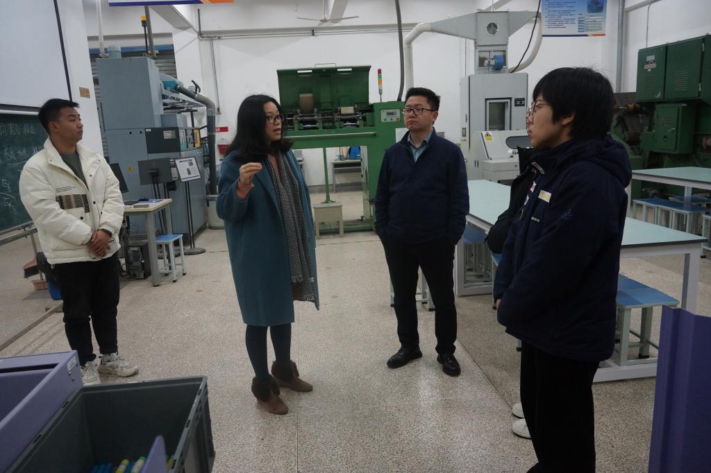 在会议开始前,江明一行还参观了纺织科学与工程学院纺纱和针织实验室。