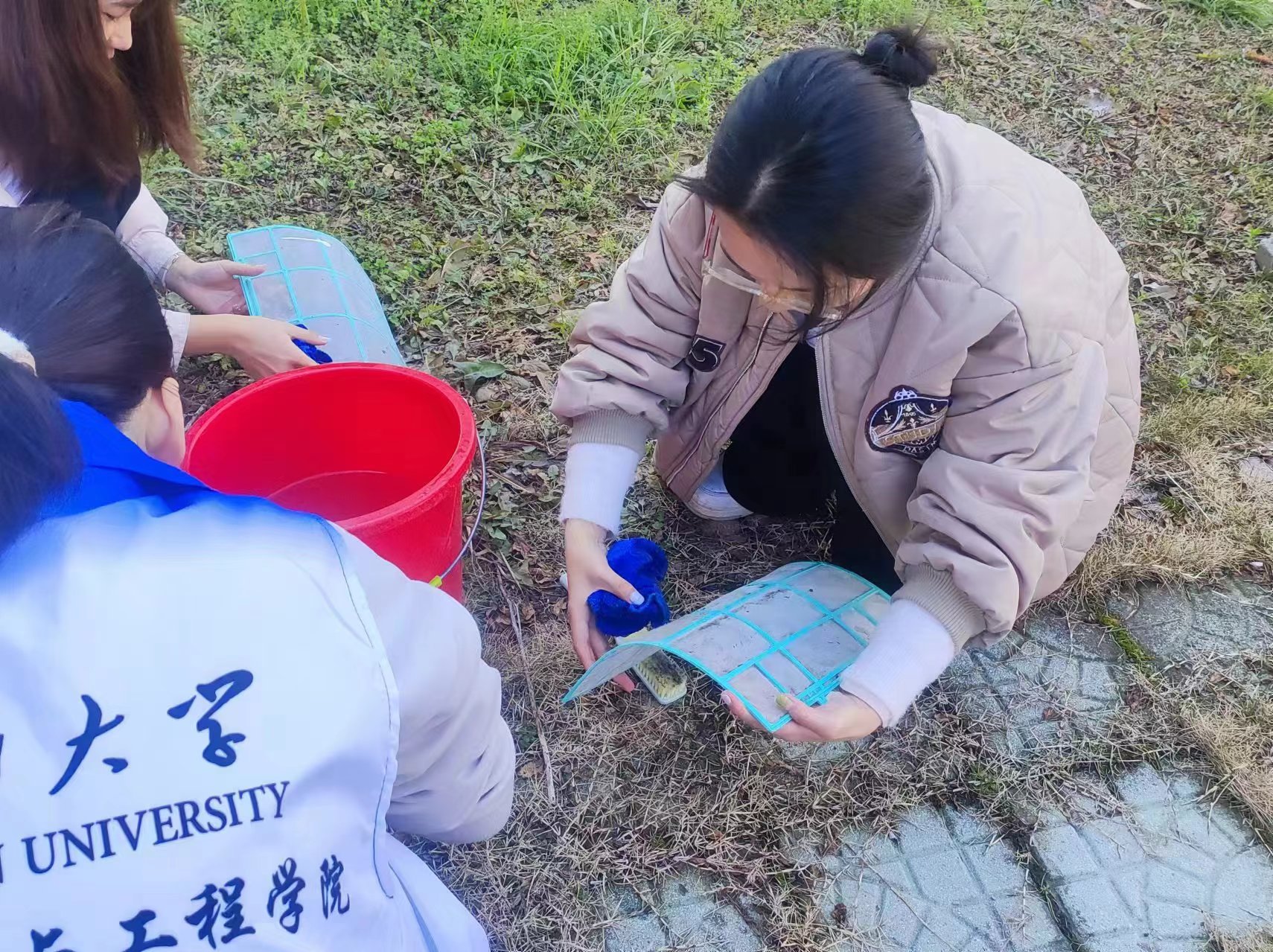 除潮气、迎朝气,贴心物资送上门。志愿者们结合现阶段宿舍生活情况,为同学送上衣柜除湿袋,有效防止宿舍衣柜回潮。传温暖、清空气,无声服务在身边。志愿者们主动上门,为同学们拆洗空调过滤网,营造干净的宿舍空气环境。新环境、递真情,点点贴纸见温馨。志愿者们走进园区自习室,和宿管阿姨一起布置装点,提供“沉浸式学习”的优良氛围。