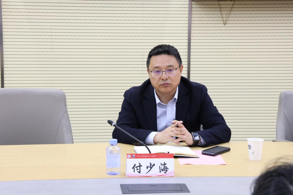 付少海对秦蕾一行表示热烈欢迎,他从学院历史沿革、人才培养、科学研究、社会服务等方面作了学院情况介绍。他指出,无锡是中国纺织产业重要基地,拥有完备的纺织产业链、供应链,是连接全国、辐射全球的前沿科技创新中心,蕴蓄着重要纺织产业优质资源。学院将继续发挥学科优势、地缘优势及特色优势,以航空航天和深海、生物医用材料、智能可穿戴纺织品为重点,加大对高端医用纺织材料、绿色低碳、智能制造关键共性技术研发,攻克一批重点基础材料,解决行业高质量发展面临的难点、痛点和堵点。他期待双方进一步深入交流,在更广领域、更高层次、更多块面达成合作,共同为区域经济发展贡献力量。