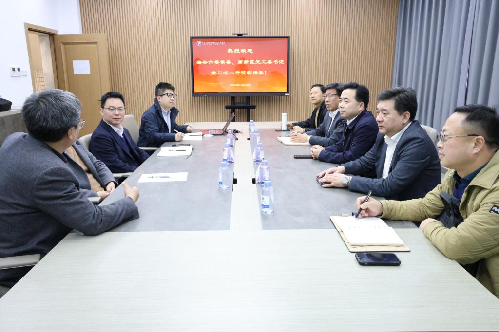3月20日,海安市委常委、高新区党工委书记郝三旺率队,高新区副主任张锋、胡集街道党工委书记孙坚、副主任顾斌等一行领导,来纺织科学与工程学院与学院领导及专家交流,推动校地产学研合作。纺织科学与工程学院副院长马丕波、副院长张典堂出席会议,马丕波主持交流座谈会。