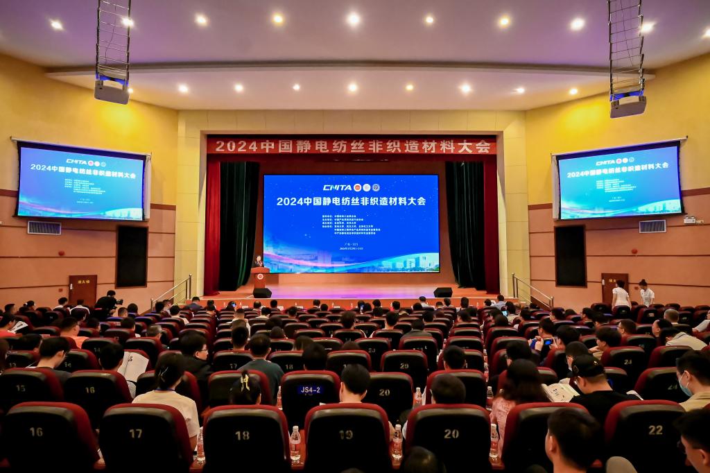 3月30-31日,以“绿色、智能、创新”为主题的“2024中国静电纺丝非织造材料大会”在广东江门五邑大学召开。大会由中国纺织工业联合会指导,中国产业用纺织品行业协会主办。纺织科学与工程学院参与相关研究的魏取福教授、吕鹏飞研究员、贺海军副教授、张继超副研究员、周文助理研究员等参加大会。