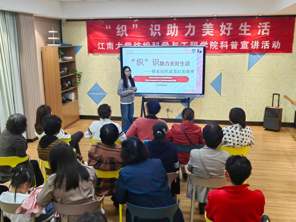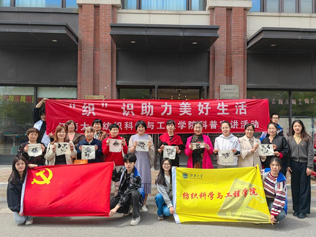 4月19日上午,纺织科学与工程学院轻化本科生党支部前往雪浪街道老年人日间照料中心开展“‘织’识助力美好生活”主题党日活动。支部党员与街道老人共同探索纺织品背后的秘密,将纺织知识带去寻常百姓家。