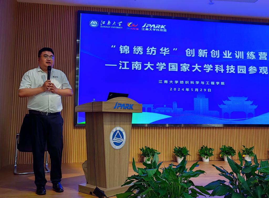 5月29日下午,纺织科学与工程学院“锦绣纺华”创新创业训练营前往江南大学国家大学科技园参访调研,无锡市滨湖区劳动保障管理中心副主任吴桢萌、无锡威尔森淀粉工业有限公司总经理周宇、江南大学科技园企业服务部主任任振宇受邀做专题讲座,纺织科学与工程学院学工办主任兼分团委书记陈裕、辅导员孙婷婷、全体训练营学员参加本次活动。