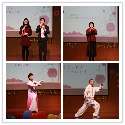 机械教师们各个能文能武,共准备了14个形式多样、精彩纷呈的节目。退休教师带来的舞蹈《化蝶》舞姿曼妙,似弱柳扶风;机电中心老师们的太极表演展现了中国传统风采;实验中心过程装备与控制系的老师表演的三句半,生动形象地把学院各部门老师的工作场景搬到了舞台中央;实验中心带来了自主创作的《诗与歌——在呼伦贝尔的大草原》更是带领大家穿越到了大草原领略北方风光;新进老师带来的歌曲《同桌的你》带大家回忆了匆匆往事……本次活动最终在包装工程系老师们动人的歌曲《明天会更好》中落下帷幕。