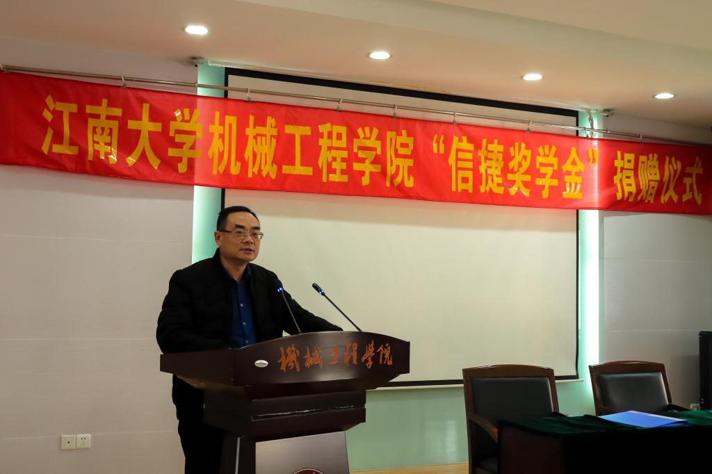 仪式开始,黄正明与过志强代表校企双方签订捐赠协议。随后,窦新华为信捷电器股份有限公司颁发捐赠证书。本次信捷公司总共捐赠30万信捷奖学金,每年10万,首次签订3期,用以奖励鼓励在学习上有较强专业素质与创新实力的江南大学机械工程学院研究生。