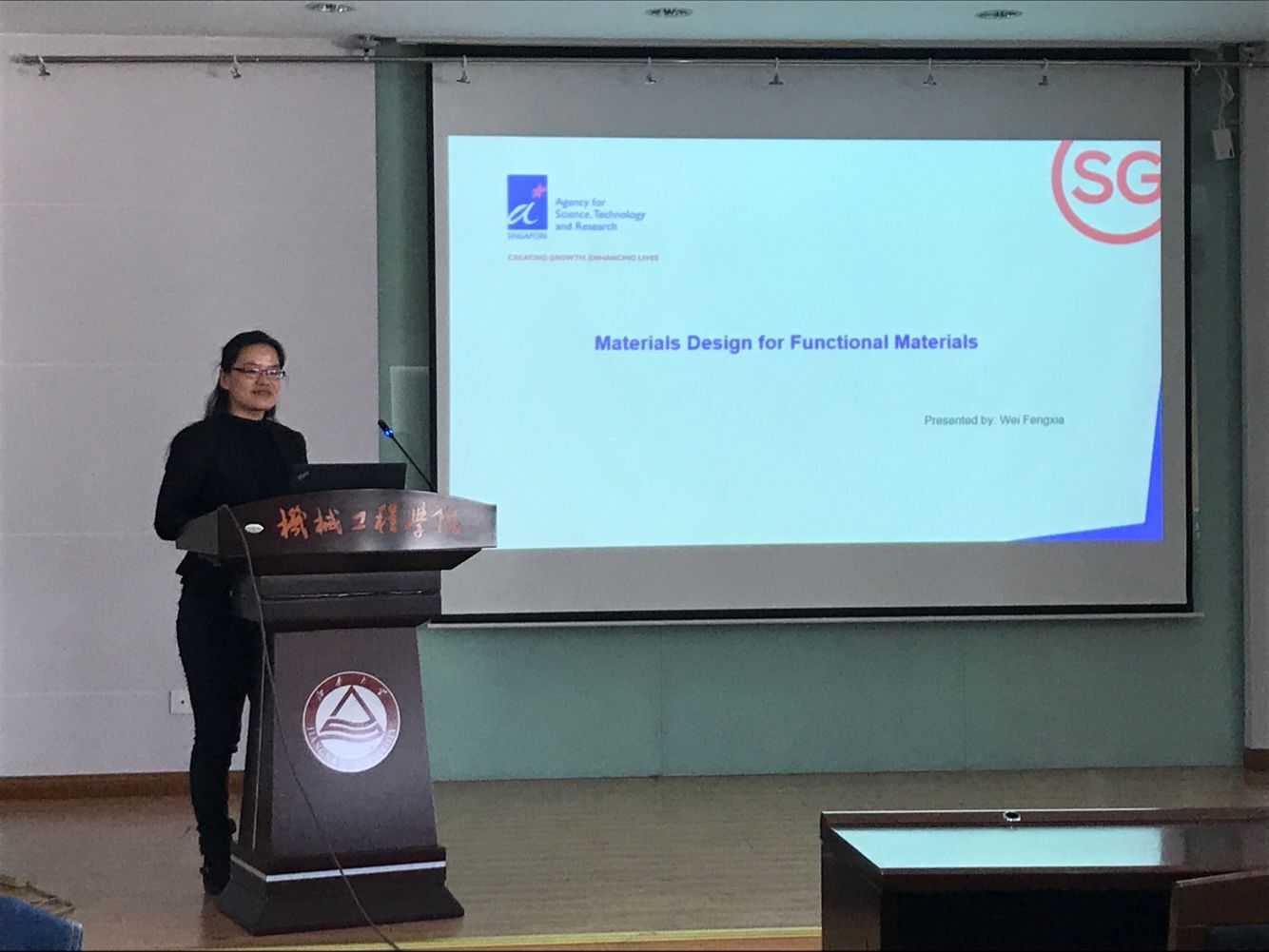 应机械工程学院微纳工程研究中心张婕教授的邀请,新加坡科技发展局魏凤霞博士于2019年4月1日下午在我校机械学院报告厅C302面向全院师生做了题为《功能材料的设计:燃料电池,太阳能电池,污水净化催化剂以及氢电催化剂》的精彩学术报告。报告由张婕教授主持,全院60余名师生参加本次学术报告。