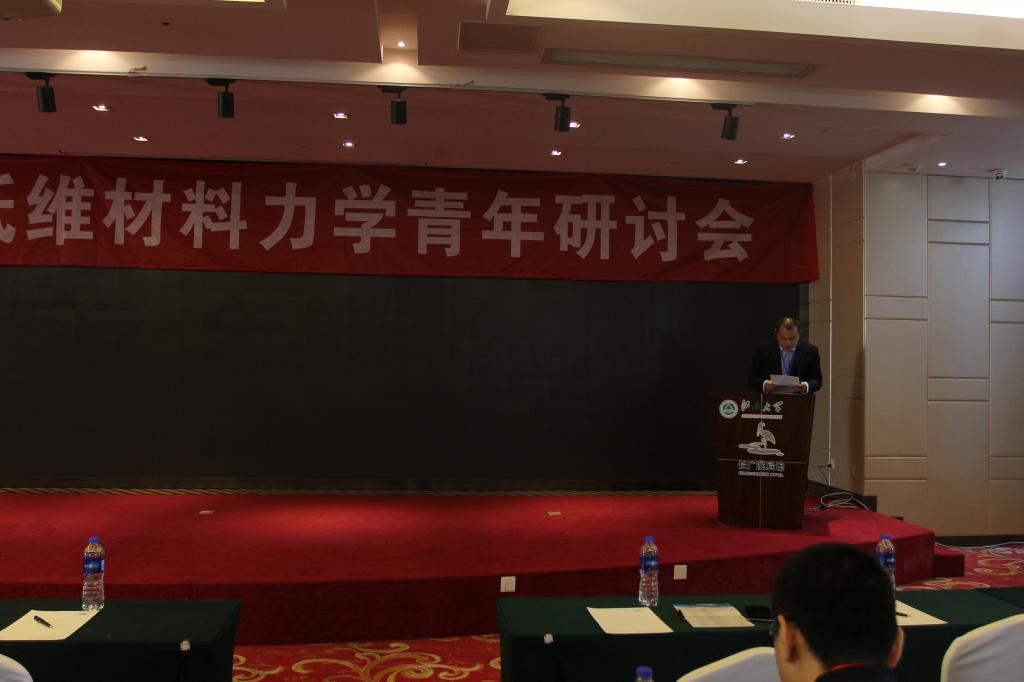 13日上午,研讨会正式拉开序幕。顾正彪教授和国家纳米科学中心张忠研究员分别致辞。顾正彪对与会专家学者的光临表示了诚挚的欢迎,并向与会者介绍了近年来江南大学的发展情况以及我校力学方向近年来取得的成绩,希望本次会议能够成为展示科研成果,分享成功经验,推动务实合作的力学盛会。张忠代表国家纳米科学中心对本次力学研讨会的举办表示热烈祝贺。随后,赵军华也向支持办好本次会议的师生表示衷心的感谢,他表示希望各位嘉宾在短暂的三天时间里充分交流,同时互相启发,拓宽视野,交流科研新成果,提出新问题,探索新方法等。