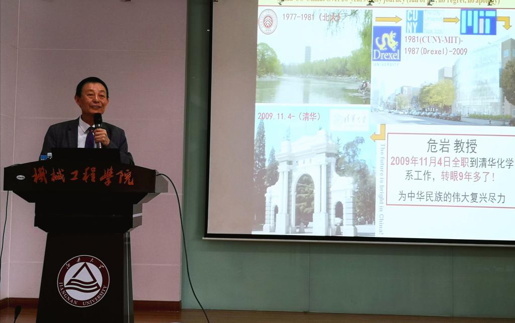 5月31日,清华大学化学讲席教授、清华前沿高分子研究中心主任危岩教授做客江南大学,在机械学院C302会议室和至善学院(图书馆819)为我校研究生和本科生分别作了两场学术报告。机械学院专场由张婕教授主持,至善学院专场由机械工程学院副院长俞建峰教授主持。