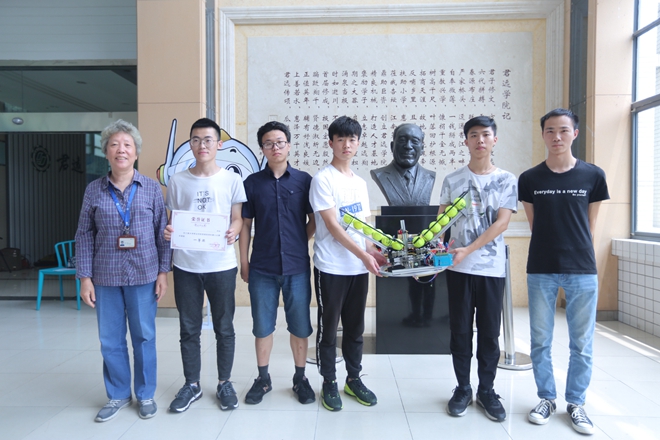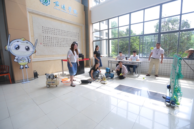 7月4日上午,江南大学君远学院首届投球机器人比赛在机械工程学院门厅举行,共12只队伍,60名学生参加。江南大学原副校长、君远学院理事会理事王武,机械工程学院党委书记、君远书院院长黄正明,机械工程学院老师平雪良、周德强、刘利国担任比赛评委。比赛由宁萌老师主持。学生间相互鼓励、一起动手动脑的场景,让竞赛充满了快乐与激情。