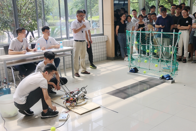君远学院院长张秋菊介绍,这个比赛是今年君远学院教学改革的新尝试,在原有《机电产品课程设计》的基础上增加了样机制作,并最终以比赛的方式呈现,对培养学生工程实践和创新创业能力十分有效。“首先是方案创意设计,好的方案是赢得比赛的前提。其次是方案的实施,考验他们的动手实践和团队合作能力。在赛场上,不仅可以锤炼他们的综合素质,更能激发学生的创新热情。这是君远学院高水平人才培养的有益尝试。”