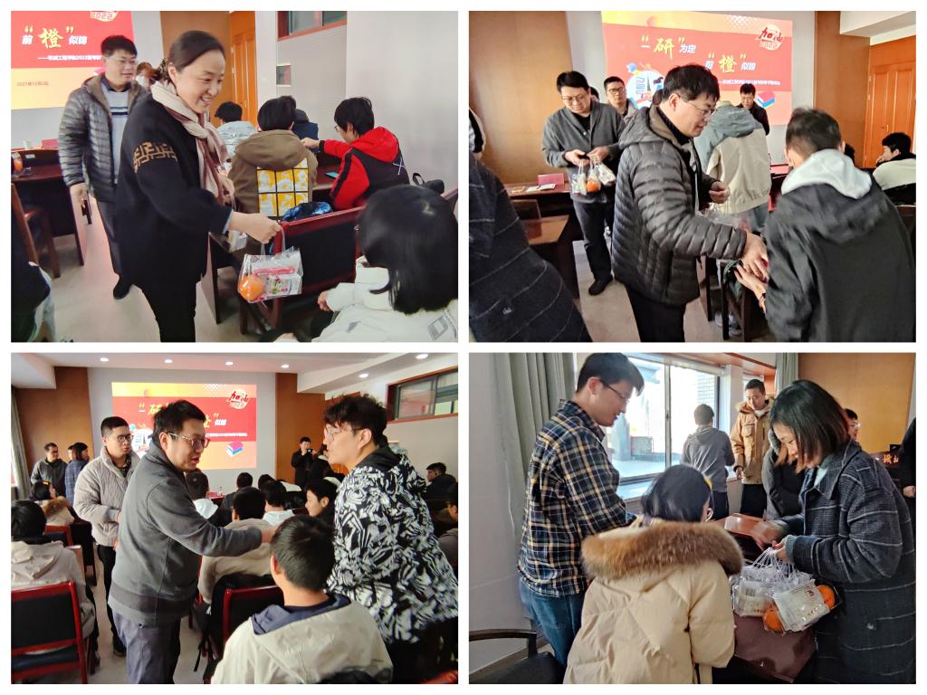 会上,高雪梅勉励同学们要重视考研的目的,在艰苦卓绝的备考过程中得到意志的磨练、个人能力的提升。并指出,虽然考研形势严峻,但是同学们要调整心态,主动适应环境,努力完成自己的目标,在紧张的备考过程中体现出机械学子不畏艰难、永攀高峰的精神。最后高书记预祝考研学子取得理想的成绩,并表示学院将是同学们最坚强的后盾,全院教师将为机械学子提供最优质的后勤保障。随后,参会的领导、老师们为考研学子发放“考研助力包”,并送出诚挚的祝福,使备考的同学感受到了学院的关怀,在寒冷的冬日感受到学院给予的温暖,从而信心倍增,积极迎战冲刺阶段。