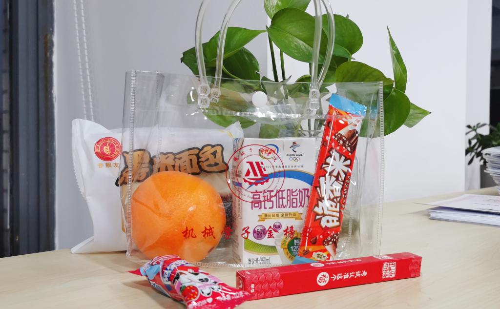 慰问会现场,学院为备战考研的同学准备了丰富的慰问品,有寓意“牛气冲天”的纯牛奶,“前程似锦”的脐橙,“能量充沛”的巧克力以及“表现极棒”的棒棒糖等。此外还有孔庙祈福的“福气盲盒笔”,带给同学们惊喜的同时,也蕴含了学院对考研学子的祝福与期盼。