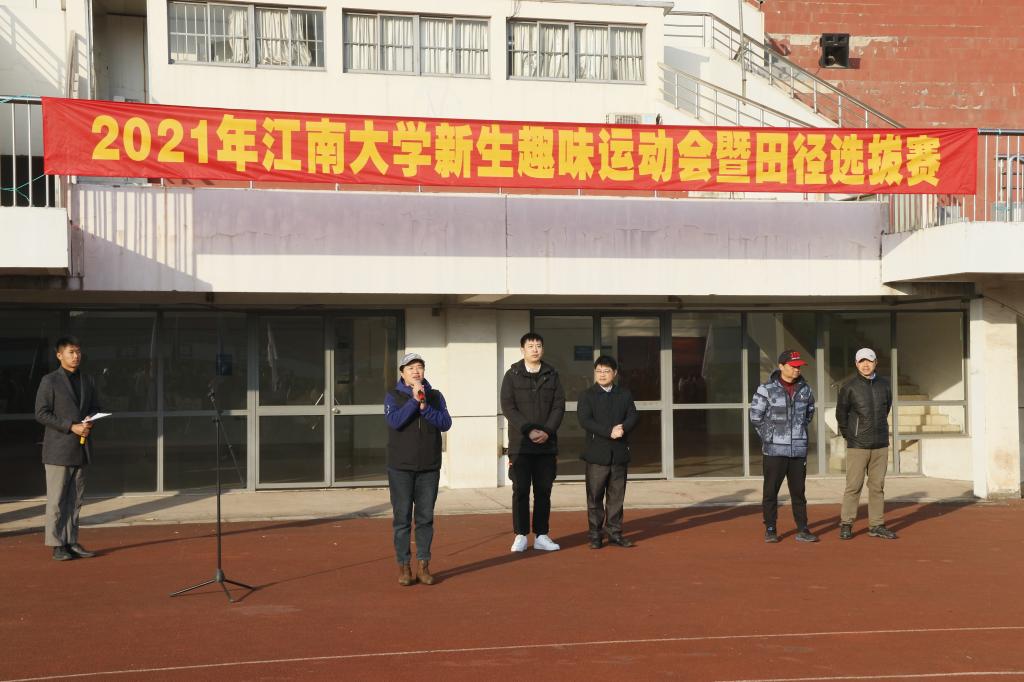 12月5日,2021年江南大学新生趣味运动会暨田径选拔赛于体育中心举行。本次比赛由江南大学体育运动委员会主办,机械工程学院承办。江南大学体育部副主任戴平,竞赛训练管理中心主任龚宁,机械工程学院党委副书记、副院长方俊,辅导员高鑫及本次赛事裁判长余亮出席开幕式。