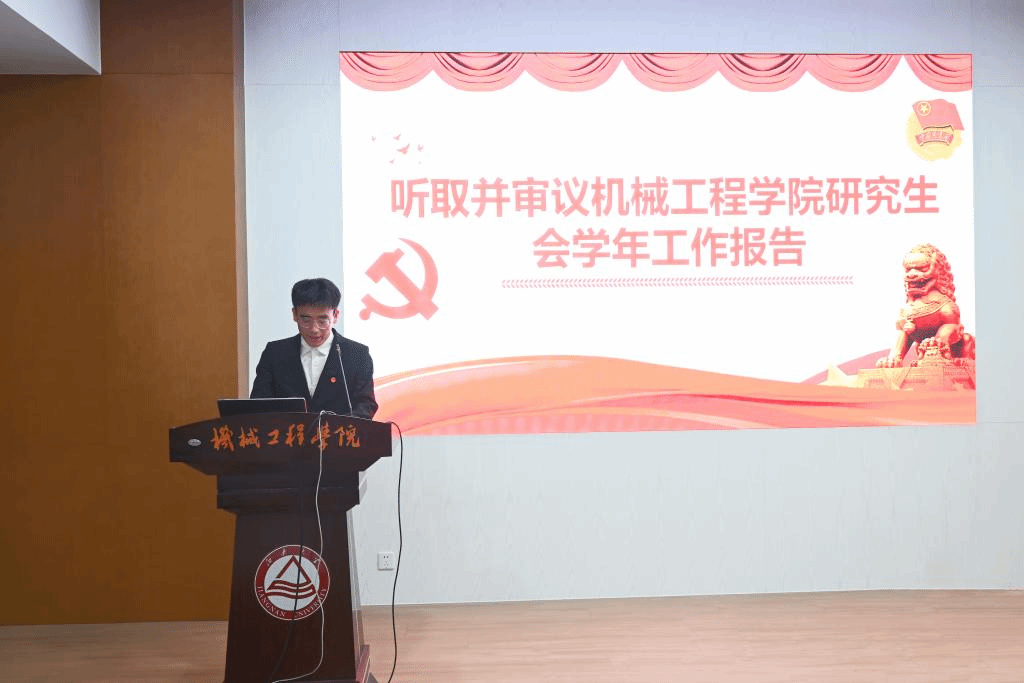 接着,学生会执行主席慕登斌代表第八届学生会向大会作了题为《开拓进取谋发展,锐意进取谱新篇,在党和国家的指引下提升学生服务工作水平,团结带领广大同学更好肩负起新时代的责任和使命》的工作汇报。研究生会执行主席梁怡良代表第七届研究生会向大会作了题为《把握时代思想,谱新篇,共成长》的工作报告的工作汇报。他们分别回顾总结了过去一年院学生会、研究生会的工作,并提出未来一年学院学生会、研究生会的工作方向和目标。