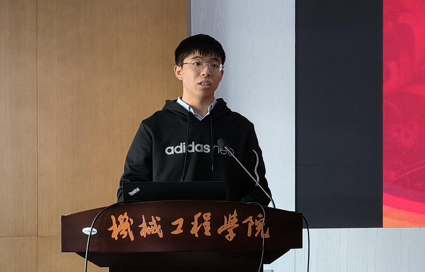 张权作为获奖学生代表发言。他表达了对爱德旺斯和学院的感谢,并表示会以饱满的热情和积极的态度投身到专业学习和学生工作中去,真正做到理论、实践两手抓、两手硬。