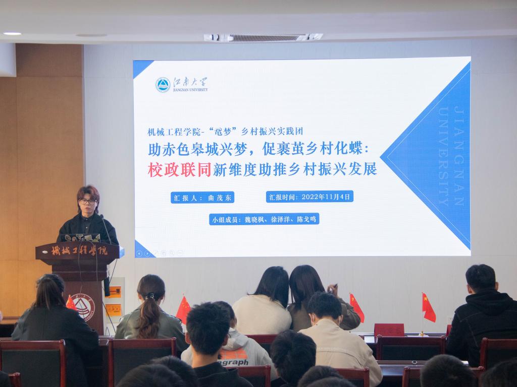 本次实践汇报会暨青马培训会邀请了“鼋梦”乡村振兴实践团、“械”逅发展成就观察团、“械”逅晓丰社会实践团、“助残 益路同行”乡村振兴实践团、小红蜻蜓实践团、红色记忆党史学习团进行汇报与分享。他们有的赴城乡观发展变化,实地感悟时代脉搏,“鼋梦”乡村振兴实践团来到大别山革命老区,参观红色基地与产业园区,走访乡村群众听社情民意。在调研中,他们感受到了乡村振兴战略给村民生活带来的显著改变。“械”逅发展成就观察团走进城市,通过企业探访、群众调研、城市发展调研,与民营制造业负责人进行交流,进入车间感受现代制造业工作环境,走进杭州博物馆、城市大脑等了解智慧城市的发展,进行民情社情调研,更好了解民众的反馈与愿景。他们有的进基层扶弱势群体,用爱心弘公益精神:“械”逅晓丰社会实践团走进无锡乡镇社区,以“留守儿童”为主要服务对象,开展为期两周的“五彩童年 红色记忆”夏令营活动,帮助社区留守儿童群体丰富假期生活,积极传播红色文化。“助残 益路同行”乡村振兴实践团在经开区太湖街道为精神障碍和智力障碍残疾人群体开展一系列的助残服务。团队走进残友家中访谈交流慰问,进公益组织参与友善产品协作,赴社会宣传推广公益精神。他们有的到红色基地听红色故事,缅先烈悟先进思想:小红蜻蜓实践团队围绕“喜迎二十大,永远跟党走,奋进新征程”的主题,通过参观红色基地、观看红色电影等加深“四史”的学习。红色记忆党史学习团队通过线上线下相结合的方式,进行党史集体学习,并赴家乡或周边地区进行了红色基地的走访。