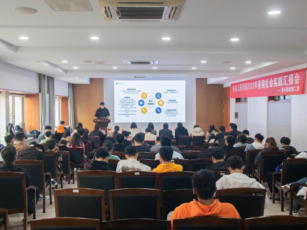 为促进党的二十大精神学习落到实处,进一步增强实践育人的实效,同时让社会实践经验形成良好传承,11月4日下午,机械工程学院2022年暑期社会实践汇报会暨青马培训第二讲在机械楼C302会议室举行。学院分团委书记孟召双、分团委副书记崔辰晖及全体辅导员出席本次活动并担任评委。2022年学院青马班学员全程观摩与学习。