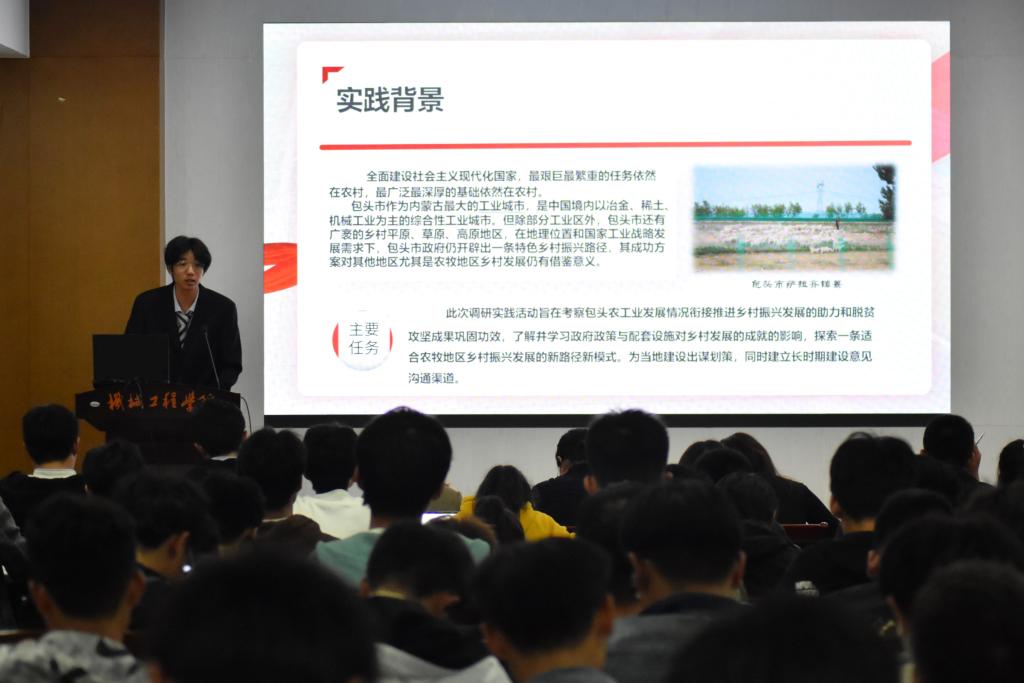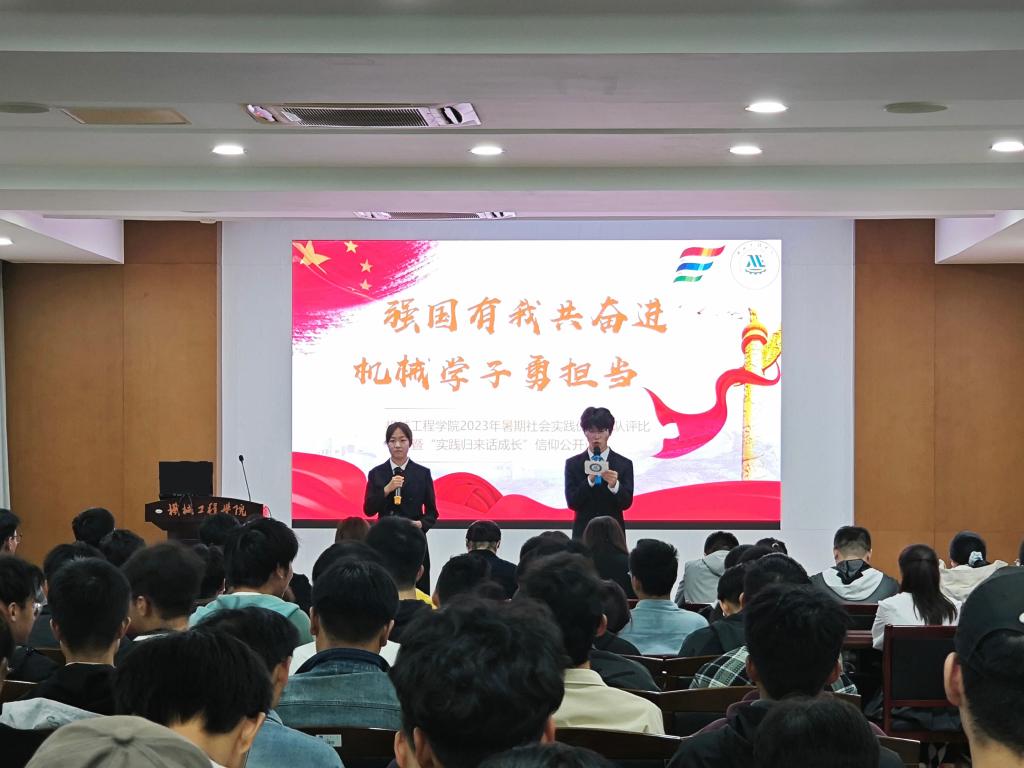 11月8日,机械工程学院“强国有我共奋进,机械学子勇担当”暑期社会实践优秀团队评比暨“实践归来话成长”信仰公开课在学院c302顺利举办。学院党委副书记、副院长刘升恒,学工办主任兼分团委书记孟召双、学工办副主任潘智琦及全体辅导员参加并担任评委。