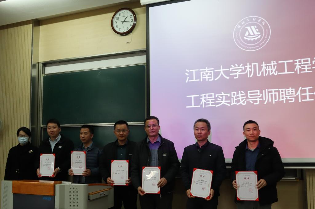 仪式上,萧欣彤简要的介绍了“工程实践导师”项目的背景,并宣读了聘任决定,聘任田国平等6位来自卡特彼勒公司的研发工程师担任工程实践导师。刘升恒为工程实践导师颁发聘任证书。
