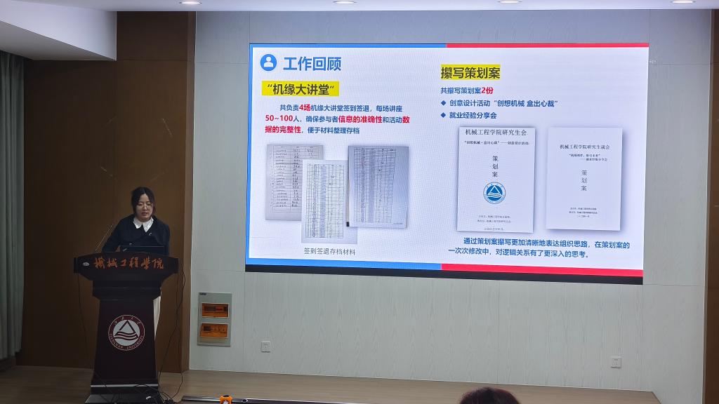 为进一步增强学生组织服务引领功能,不断提升学生骨干素养,近日,机械工程学院研究生会在机械楼C302召开第九届研究生会学生骨干述职评议会,并进行首届“星承计划”面试。学院学工办主任兼分团委书记孟召双、第九届研究生会全体成员参会。