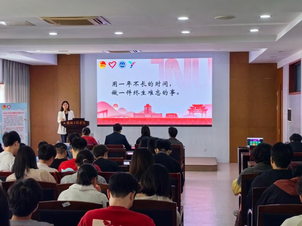 学校宣讲团成员马懿玟详细解读了“两项计划”的具体内涵、政策保障、招募选拔流程。方思源、崔俊依次进行了“志愿归来话成长”我的青春故事分享。方思源真切展示了充实的基层工作经历和志愿服务,分享了她的收获与成长,号召同学们在最好的年华把个人理想融入乡村振兴的伟大实践。崔俊以《用一年不长的时间,做一件终身难忘的事》为题,讲述了他一年多来在盐都区志愿服务道路上的所见、所闻、所思、所想、所悟、所获,鼓励广大同学积极报名乡村振兴计划,为助力乡村发展注入“江南力量”。