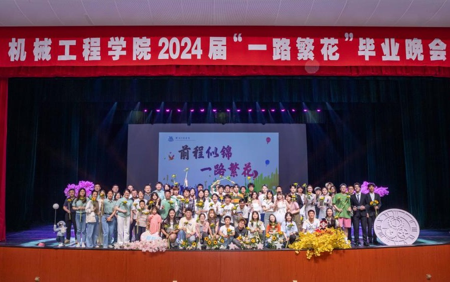 5月26日晚,机械工程学院2024届“一路繁花”毕业晚会于文浩馆进行。学院领导班子、各系部主任、毕业班班主任、学院教师代表、辅导员老师与800余名毕业生一同观看晚会。