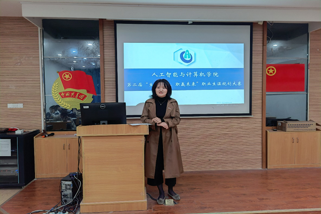 为全面普及学生职业生涯规划知识,传播生涯成长理念,提高大学生的创新能力、实践能力和就业创业能力,引导大学生形成正确的择业观和价值观,人工智能与计算机学院第二届职业生涯规划大赛于11月17日晚在信息楼B109报告厅成功举办。无锡博世创新软件开发有限公司HRBP过晨华、王倩,人工智能与计算机学院党委副书记兼副院长陈祎,辅导员米宁、杨玉莹,学院兼职辅导员赖玲静出席并担任决赛评委。