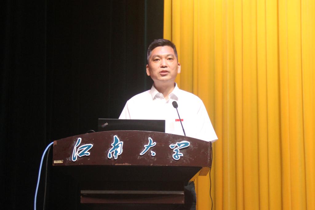 谢振平在图书馆三楼报告厅为全体研究生新生开展入学教育讲座,重点介绍了专业能力的培养方式、导师双选制度以及获得学位的条件,希望同学们能够养成目标导向的学习方式,潜心学习与科研,用细致创极致,助力科技强国的战略发展。