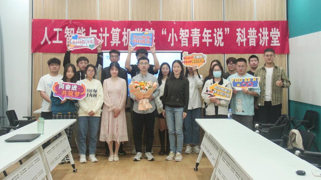 4月16日下午,人工智能与计算机学院“小智青年说”科普课堂第一讲活动在“鼋梦之家”一站式学生社区举办。学院青年教师王锐、学工办主任兼分团委书记王园园、本科生辅导员米宁及20余位学生参加活动。