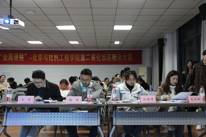 2019年3月22日晚,由德国爱卡公司赞助,化工学院学创中心举办第二届化妆品概念大赛在化工楼A316成功举办。化工学院王靖副教授、辅导员鞠峰、研究生孙菡峥、张瑞琪作为评委参加了此次化妆品概念大赛的决赛。