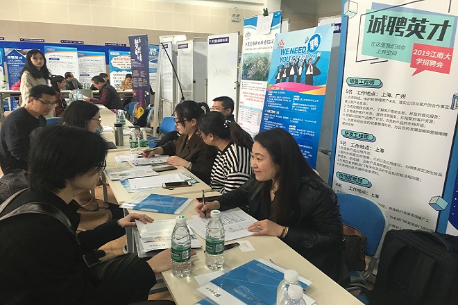 3月29日下午,“化学与材料工程学院2019届毕业生春季供需见面会”在江南大学北区大学生活动中心成功举行。院党委书记潘庆伟、副书记田卫平参加了供需见面会,并与参会企业代表和学生亲切交谈,了解企业需求和毕业生求职进展。