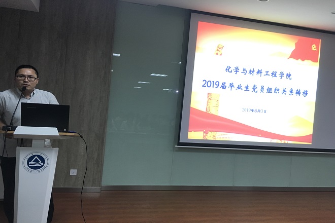 会上,化工学党建辅导员张凯带领与会师生重温了入党誓词,铮铮誓言传递出坚定的信念和力量、凝聚起大家的初心和使命。学院党委秘书董小平就2019届毕业生党员组织关系转移作了宣讲,从转接工作的重要性、转接程序、时间节点要求及特殊情况处理等方面做了详细介绍。