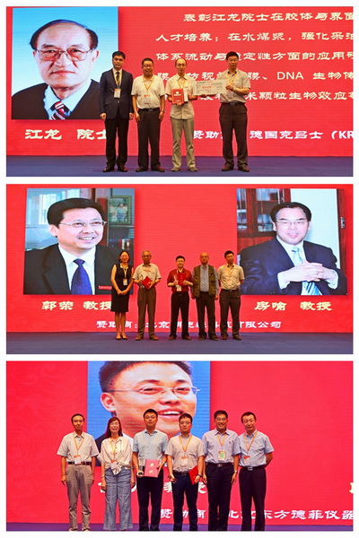 开幕式上隆重颁发了2019年胶体与界面化学领域三个重量级奖项。江龙院士荣获第一届中国化学会胶体与界面化学专业委员会终身成就奖,房喻教授、郭荣教授荣获第三届中国软物质杰出贡献奖,侯旭教授、段鹏飞研究员荣获第四届“东方胶化杯”中国化学会胶体与界面化学优秀青年学者奖。