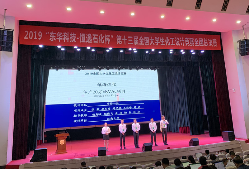自接到赛题通知以来,化工学院积极动员学生参与该项赛事,共有7支团队参与此次竞赛。通过五个月的紧张设计和院内选拔,师生通力协作,学院不仅承办了江苏省区赛的承办工作,最终在省赛中获特等奖2项、一等奖1项、二等奖3项。其中HUGE华格一队团队历经江苏省省赛、华东赛区选拔赛以及全国总决赛的激烈角逐,在各轮次评选和答辩环节中密切配合、相互协作,获得了评委们的一致认可和高度评价,作品“镇海炼化年产20万吨VAc项目”最终获得江苏省特等奖、华东赛区特等奖以及全国特等奖。在去年我校突破获得特等奖后,倪邦庆、钮腾飞等指导老师积极在低年级进行宣传指导,让学生早做准备,在课程学习中找苗子,精心指导。本项比赛从省赛、区赛到国赛全部在假期期间开展,为了达到好成果,老师和学生们全身心投入,通过不断的打磨,作品设计完善、文档质量高,现代设计方法运用应用优秀,得到评委的认可,在激烈的竞争中保持了优异的成绩,再次获得特等奖,也得到了各高校化工学科对我院化工专业水平的认可。