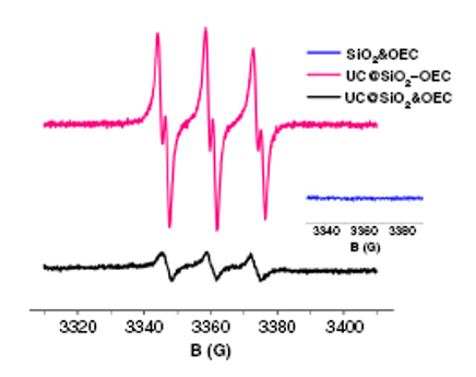 物理混合及接枝型光引发体系产生的自由基的电子自旋共振谱