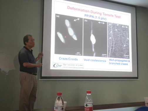 2019年9月28日下午,中国工程院外籍院士米耀荣(Yiu-Wing Mai)教授、杭州师范大学汤龙程研究员和四川大学王孝军副研究员应邀来我校化学与材料工程学院访问,并在学院A316学术报告厅分别做了题为“Toughening Lightweight Thermoplastic Nanocomposites”、“有机硅分子与氧化石墨烯协同构筑绿色阻燃复合材料及其应用研究”和“基于微球脱粘——一种热塑性复合材料界面评价方法的开发与应用”的精彩报告。刘天西教授主持了报告会,并对米耀荣院士、汤龙程研究员和王孝军副研究员的来访致以热烈的欢迎。