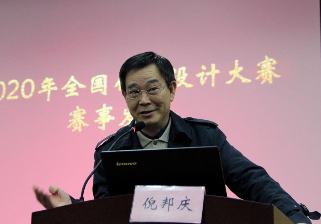 大会最后,倪邦庆发言。他首先肯定了参加化工设计大赛的意义,激励同学们参加竞赛,并且积极咨询导师,利用导师这一平台进行解惑。随后,他发布了2020年全国化工设计大赛参赛主题。