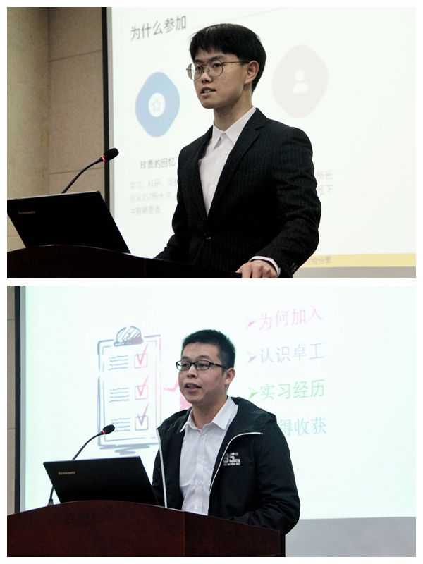 随后,2019年化工设计大赛特等奖获得者华格一队刘吕作为优秀学生代表进行竞赛经验分享,他主要就参加化工设计竞赛的初心及参加竞赛的注意事项进行了分享,帮助同学们了解化工设计竞赛的赛程。接着,卓工奖学金获得者王龙威同学进行了卓工学习实习经历分享,让同学们对卓工班有了更进一步的了解。