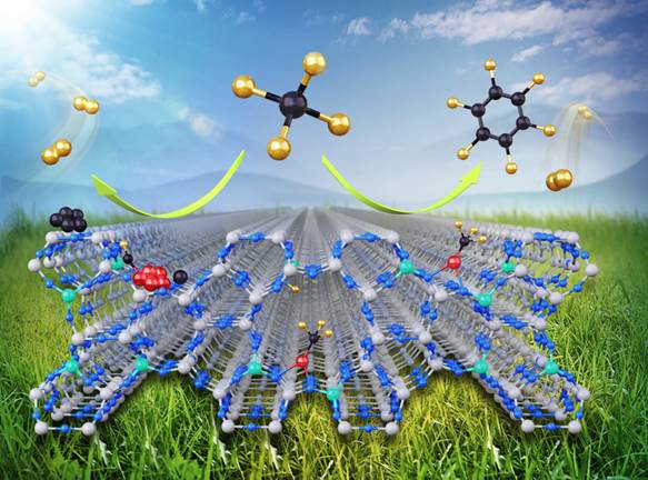 天然气(页岩气、可燃冰等)是地球上含量最丰富的含碳资源之一,其主要成分是甲烷。甲烷是一种富氢、且具有强温室效应的高度稳定的最简单的烃分子,如何将其大规模高效转化为高价值的化学品和环境友好的氢气燃料具有重要的现实意义。甲烷无氧芳构化是实现天然气原子经济直接转化为芳烃和氢气的最有效的途径。在高温(700~800°C)下如何实现甲烷分子中C-H键可控活化转化是极具挑战性的研究课题,也因此被喻为催化界的“圣杯”。