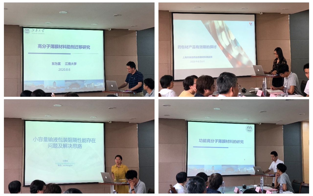 东为富对徐敏凤一行的到来表示热烈欢迎。顾志国简要介绍了化工学院的历史沿革、学科建设、师资队伍、科学研究和人才培养等情况。蔡荣就上海包材所申请重点实验室概况及药品包装材料现状及趋势进行了深入的分析,王蓉佳主任、陆维怡主任分别作了题为“小容量输液包装阻隔性能存在问题及解决思路”“药品包装的货架周期研究”的报告;东为富教授、汪洋副教授分别就“高分子薄膜材料助剂迁移研究”“功能高分子材料薄膜的研究进展”进行了汇报交流;双方认真听取了报告,进行了热烈地交流,并就合作意向进行开放式讨论,指定了专门的负责人进行后期对接。