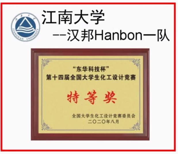 汉邦Hanbon一队获第十四届全国大学生化工设计竞赛特等奖