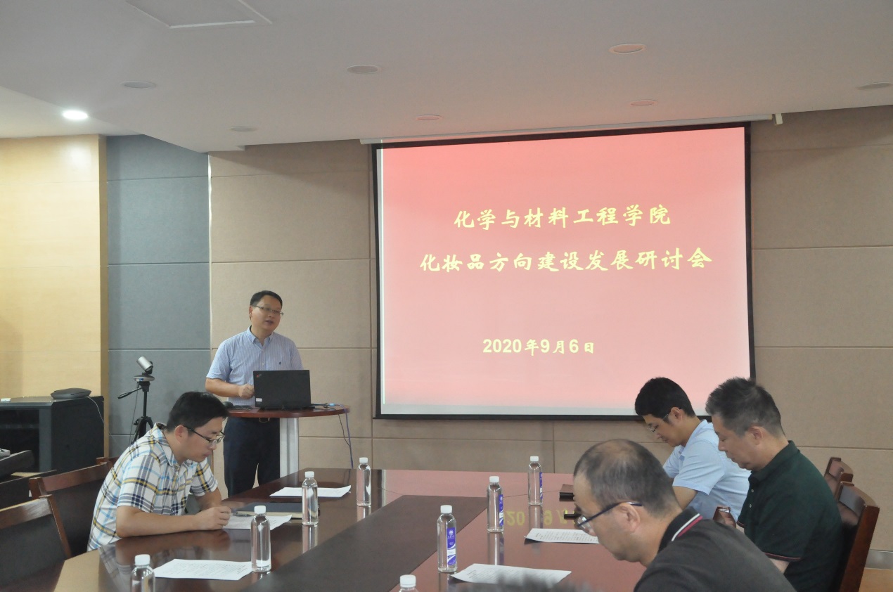 9月6日下午,化工学院在A310会议室召开化妆品方向专题研讨会,学院党委书记潘庆伟主持,学院党政班子成员、化妆品团队全体老师、大日化中心相关教师代表参加了会议。