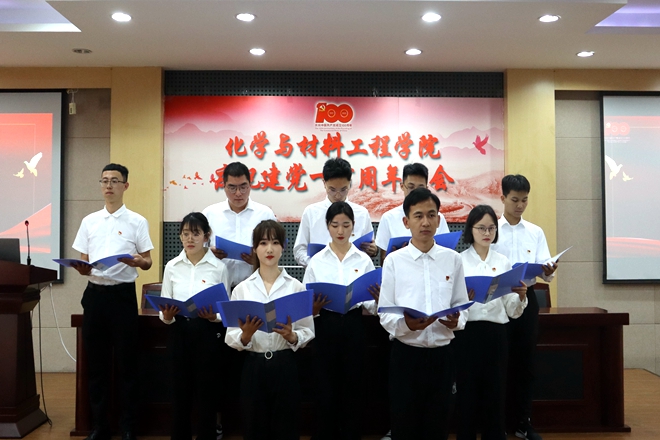 会上,田卫平带领全体党员师生共唱《国际歌》。随后,真材实料研究生党支部进行了开场诗朗诵《红船,从南湖启航》,带领全体党员重温中国共产党成立的伟大历史。潘庆伟郑重宣读学院优秀党员、优秀党务工作者、示范性基层党组织表彰文件并授予证书。东为富宣读新发展预备党员名单,并由全体党委委员、教工党支部书记为全体预备党员授予党徽。院学工办主任刘凡带领全体党员面向党旗郑重宣誓。