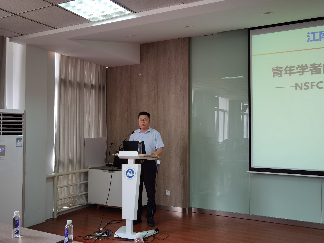 报告会上,东为富对杜建忠教授进行了介绍,并对杜建忠的来访致以热烈的欢迎和衷心的感谢。杜建忠首先介绍了国家杰出青年科学基金和优秀青年科学基金项目,指出杰出青年项目是十年磨一剑的学术积累,深入分析了时代需要什么样的青年学者。接着,他重点介绍了国家自然科学基金的申报工作,全面细致地分析了国家自然科学基金的特点、评阅流程、撰写要点的建议,最后对申报过程中出现的常见问题进行了深入的剖析。杜建忠高瞻远瞩的视野和具有丰富内涵的报告内容,使得在场教师和研究生受益匪浅,感受颇深。