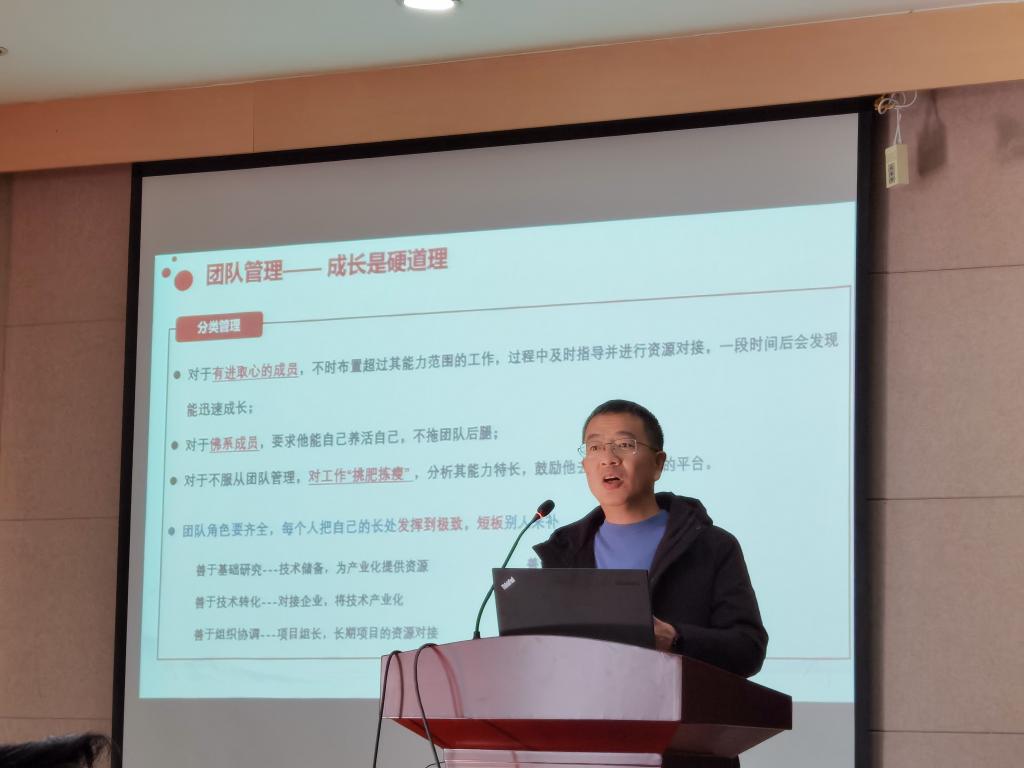 本次培训,学院特邀招就处处长、食品学院生物技术中心赵建新教授做了题为“漫谈科研团队建设”的专题交流,阐明了为什么建团队、建怎样的团队、怎样建好团队等关键问题,并且强调团队要有所为有所不为,团队成员之间要主动补位,建立良好的沟通渠道,为学院科研团队建设和研究生培养提供了珍贵的指导。