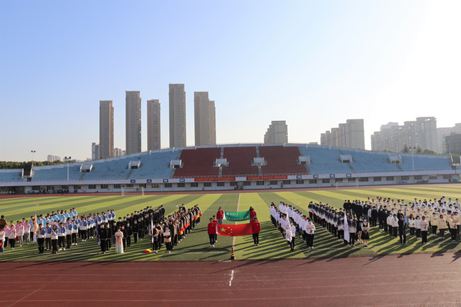 守护国旗壮人心,步步铿锵踏将来,国旗、院旗方阵的同学们目光如炬、精神昂扬,各班级的方阵以昂扬的姿态进场,整齐划一,朝气蓬勃,铿锵的脚步,嘹亮的口号,处处彰显青春的活力。