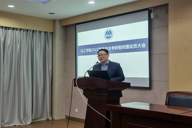 12月6号下午,化工学院举行2022届本科生考研慰问暨动员大会,学院党委书记潘庆伟、副书记田卫平,毕业班班主任毛明富、桑欣欣、杨璇等老师,以及2022届190余名考研本科生参加了此次大会,大会由年级辅导员张凯主持。
