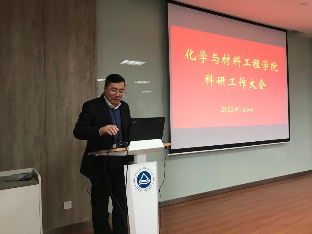 1月6日,化学与材料工程学院在化工楼A316会议室召开科研工作会议,邀请专家分享科技服务政策和经验、汇报学院年度科研进展和团队介绍交流。产业技术研究院院长刘龙教授、化学与材料工程学院全体党政领导、全体科研团队负责人及成员参加会议,会议由院长东为富主持。