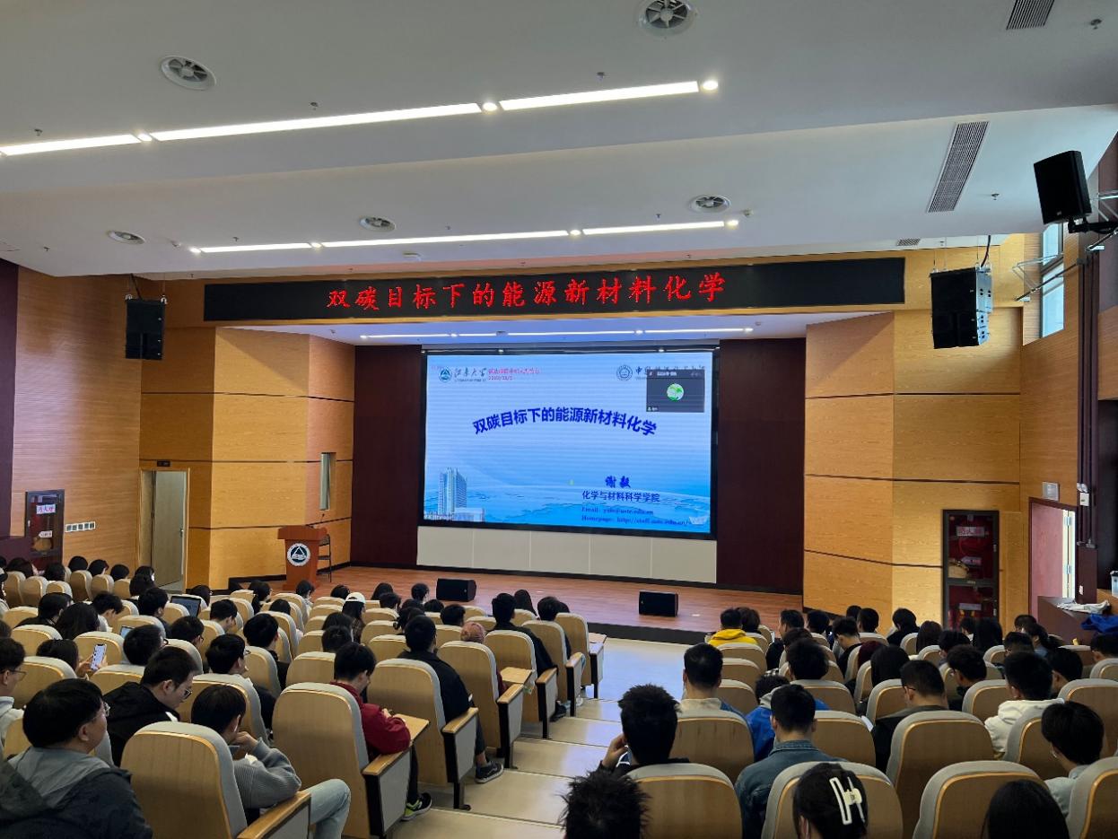 报告会上,谢毅以“双碳目标下的能源新材料化学”为题作了主题报告,详细介绍了双碳目标下小分子光电催化转化、热电催化、可再生能源等领域中能源材料方面的最新研究进展和发展趋势。孙晓明以“气体超浸润纳米阵列电极及氢能应用”为题作了主题报告,详细介绍了电催化制氢、电催化二氧化碳还原等领域中微纳结构超亲气电极构筑方面的最新研究进展。两位专家的报告高屋建瓴、创新突出、启发性强,引起了我校师生的强烈兴趣和广泛讨论。