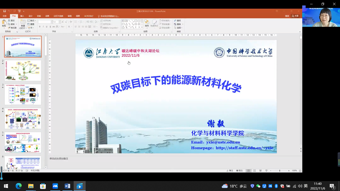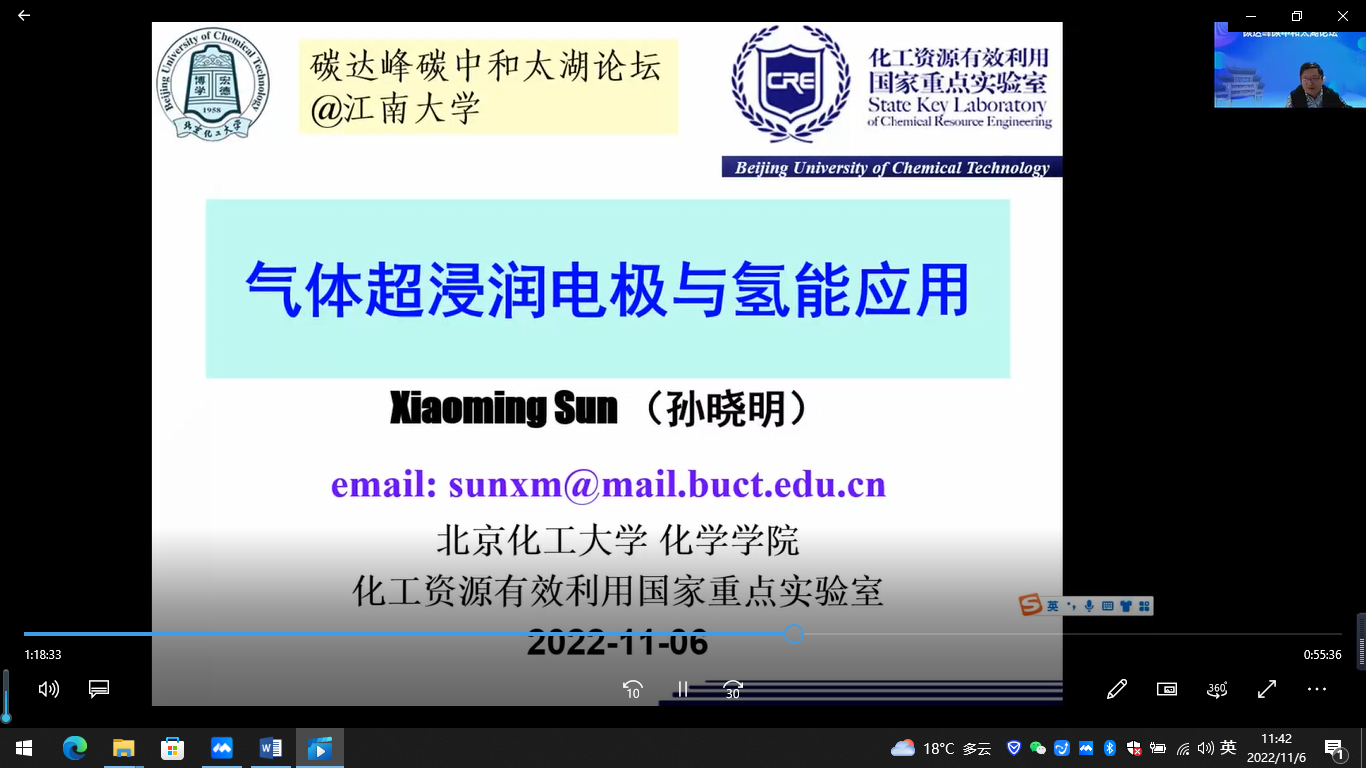 11月6日,由江南大学、中国感光学会光催化专业委员会等联合设立的“碳达峰碳中和太湖论坛”正式启动,举行了开讲仪式和首期报告会。中国科学院院士、中国科学技术大学谢毅教授,中国感光学会副理事长、光催化专业委员会主任、清华大学朱永法教授和北京化工大学孙晓明教授应邀出席,开讲仪式和学术报告会分别由化学与材料工程学院院长东为富教授,朱永法教授主持,校长助理张光生教授代表学校致辞并宣布论坛开讲。首期活动采用线上线下结合的方式,在蠡湖校区和宜兴研究生院分别设立集中会场,化学与材料工程学院副院长董玉明教授和相关师生共计约500人参加。